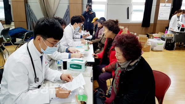 이번 봉사활동은 서산청년회의소가 메디컬 소사이어티 측에 제안해 이뤄졌으며 ▲안과 ▲소화기내과 ▲호흡기내과, ▲치과 ▲정형외과 등 13개 과목의 진료가 진행됐다.