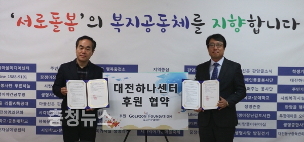 이날 협약식에는 대전하나센터 배영길 센터장, 골프존문화재단 김윤길 사무국장 등이 참석했다.