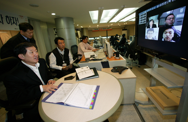이 곳에서 조 사장은 WCDMA폰을 이용한 다자간 영상통화를 통해 전국 각 지역의 교환국과 주요 고속도로 및 국도상의 기지국 현장 근무자들을 격려했다.