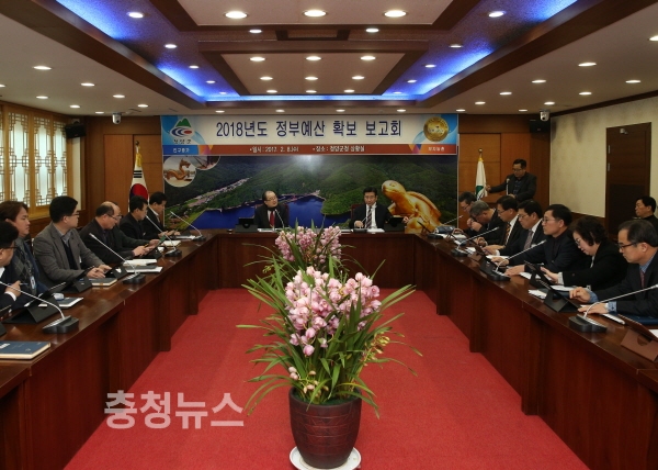 군은 8일 군청 상황실에서 부서장 및 주무팀장 등 50여명이 참석한 가운데 이석화 군수의 주재로 보고회를 개최, 2018년도 정부예산 확보를 위한 발 빠른 행보를 보였다.