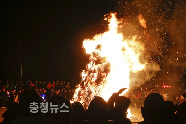 지난해 정월대보름을 맞아 현도교 아래 금강변 일원에서 열린 ‘신탄진 대보름 쥐불놀이 축제’행사에서 달집태우기 장면