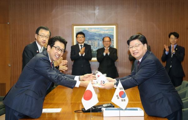 삿포로 눈축제 참가와 2017APCS 홍보를 위해 일본 삿포로시를 방문 중인 권선택 대전시장이 방문 첫 날인 8일 삿포로시청에서 아키모토 가츠히로 삿포로 시장과 면담을 갖고 오는 9월 대전에서 개최되는 2017APCS 국제행사 참가 요청과 함께 교류협력 강화 방안에 대해 논의했다.