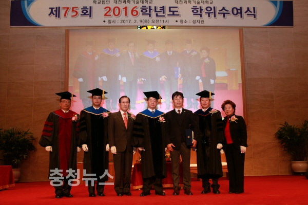 대전과학기술대학교는 9일 교내 성지관에서 열린 2016학년도 학위수여식에서 금융부동산행정과 졸업생(2005년 졸) 윤정섭(60세, 남) 씨에게 자랑스러운 혜천인상을 수여했다.