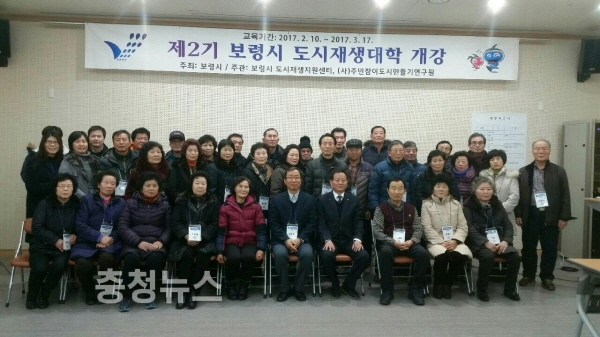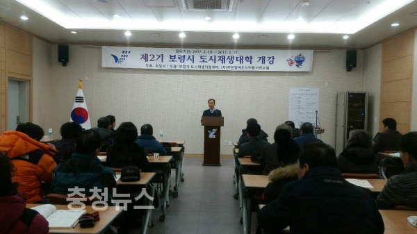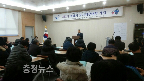 충남 보령시가 주민의 적극적인 참여로 주민 스스로 지역의 문제를 찾아내고 해결할 수 있는 능력 배양으로 자력형 도시재생 추진체계 기반 조성을 위해 추진한 도시 재생대학이 10일 제2기 개강식을 갖고 본격 운영에 돌입했다.