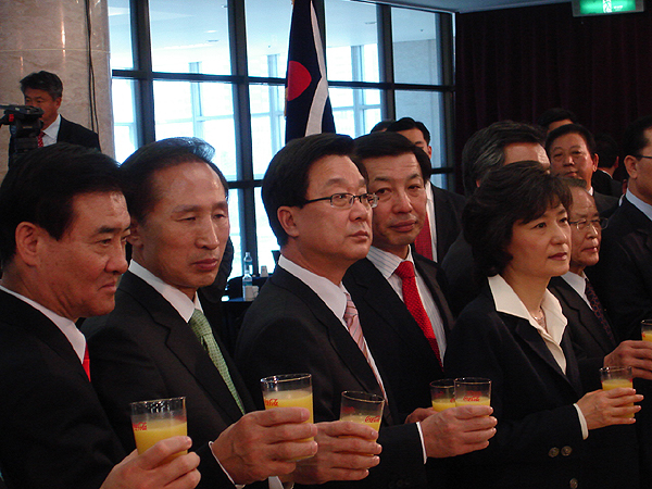 ▲이명박 전 시장은 어제 코엑스에서 전국 기초단체 의장들 모임에 박 대표와 제가 나란히 앉았는데 9번을 마주치고 한번을 외면했는데 사진 기자가