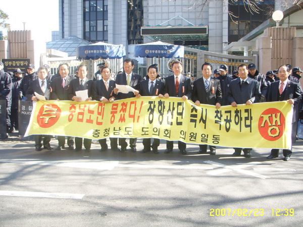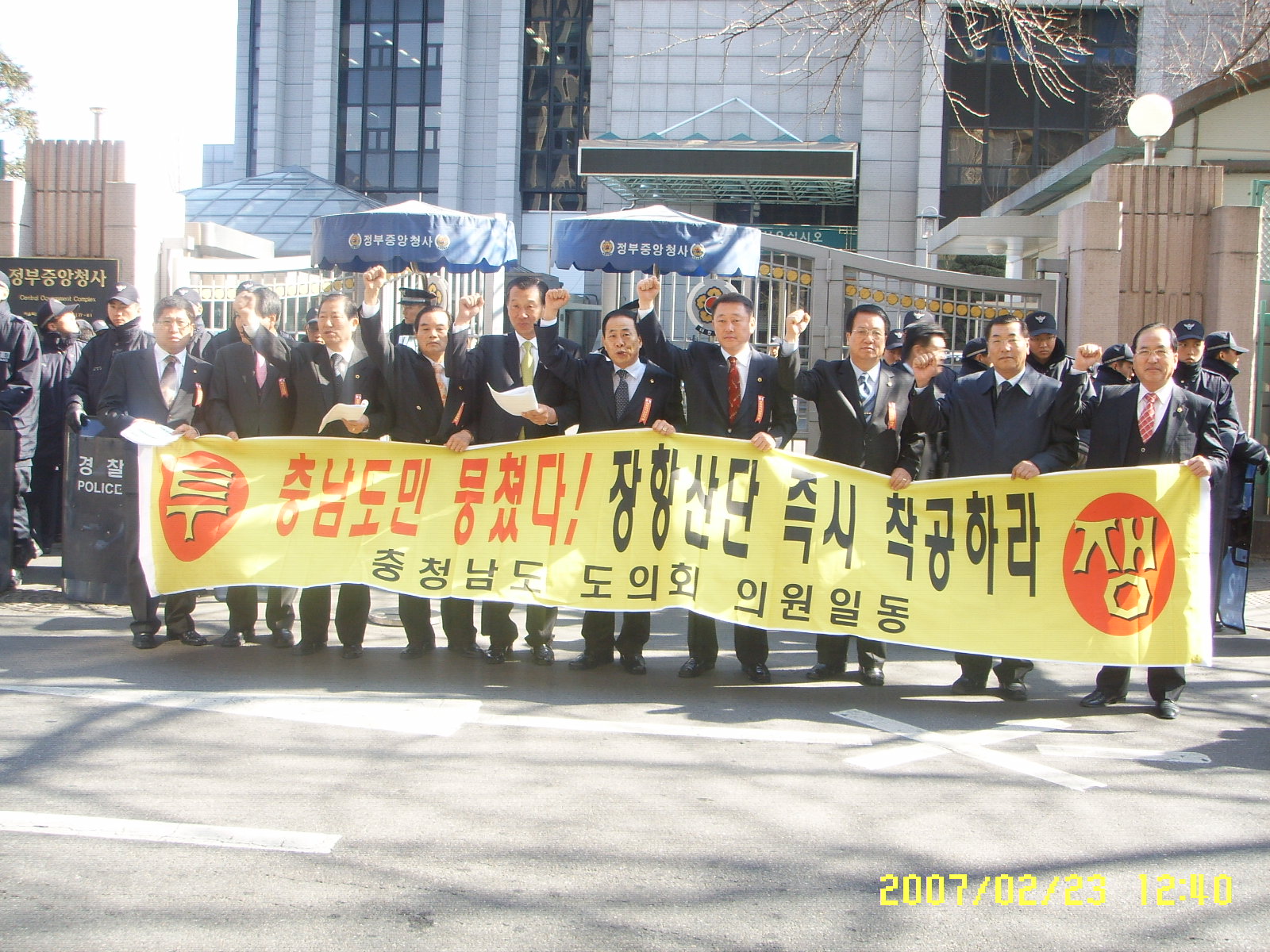 23일 국무총리실을 전격방문한 의원은 김문규충남도 의회의장,유병기'송선규부의장및 오세옥'이은태위원장 조치연 부위원장, 김성중의원, ,정종학의원,홍성현의원, 황우성의원등이다.