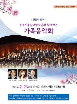 충남 금산군(군수 박동철)이 2017년 새봄맞이 ‘공주시충남교향악단과 함께하는 가족음악회’를 개최한다.