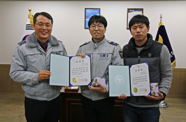 월평지구대 조창현 순경, 생활안전과 김광훈 순경 표창 수여