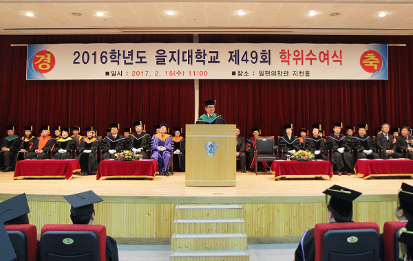 을지대학교(총장 조우현)는 15일 오전 대전캠퍼스 일현의학관 지천홀에서 2016학년도 제 49회 학위수여식을 개최했다.
