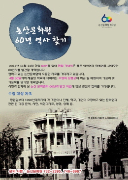 ‘논산문화원 60년 역사 찾기’에 관한 자세한 사항은 논산문화원(☏041-732-2395, 746-6967)으로 문의하면 된다.