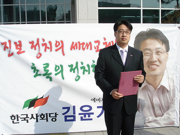 김윤기 한국사회당 대전시당 위원장(32)이 27일 오전 10시 서구 선관위에 관련 서류를 제출하고 예비후보