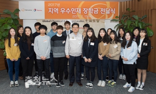 한화토탈(대표이사: 김희철)이 15일 대산공장 경영회의실에서 우수 대학에 입학한 지역 학생들 대상으로 ‘2017 지역 우수인재 장학금 전달식’을 개최했다.