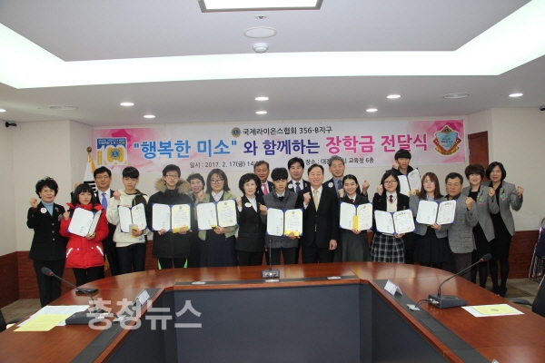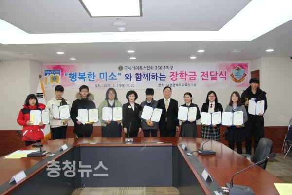 국제라이온스협회 356-B지구 송경자 총재는 17일 오후2시 대전광역시 교육청 6층에서 설동호 대전광역시 교육감과 라이온지도자가 참석한 가운데 장학금 전달식을 가졌다.