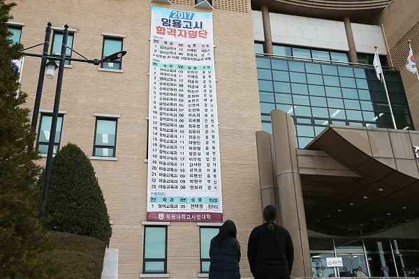 목원대는 지난 2월초 발표된 2017년 전국 시도교육청 교원 임용고사에서 중등 23명, 유치원 2명 등 총 25명의 합격자를 배출했다고 20일 밝혔다.과목별로는 음악 11명, 미술 5명, 국어 2명, 영어 1명, 유아 2명 등이다. 교육청별로는 경기교육청이 6명, 경남교육청 3명, 대전교육청 2명 등의 순으로 합격자를 배출했다. 이밖에 1명이 사립중등교원으로 임용됐으며, 19명의 졸업생이 유치원 신규교사로 임용됐다. 지난 2015년 24명, 2016년에는 33명의 합격자를 배출했다.