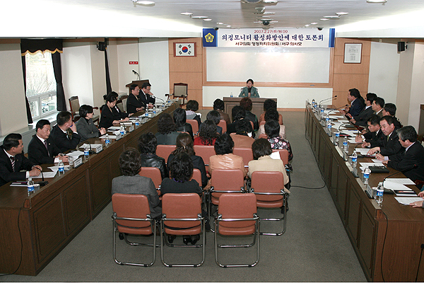 대전시 서구의회 행정자치위원회(위원장 구우회)는 27일 오후 4시 구청 중회의실에서 '의정모니터 활성화 방안에 대한 토론회'를 개최했다.