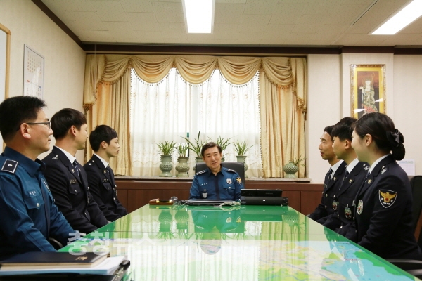 또한, 경무, 청문감사, 생활안전 등 각 부서별 대면식을 가지며 부서 업무 소개, 신임경찰관의 포부를 듣는 등 부드러운 분위기 속에서 신고식이 진행됐다.