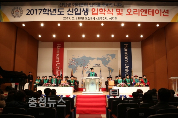 한남대(총장 이덕훈)는 21일 교내 성지관에서 2017학년도 신입생 입학식을 개최했다. 한남대에는 올해 학부 2,864명, 석사과정 325명, 박사과정 43명 등 총 3,232명이 입학했다.