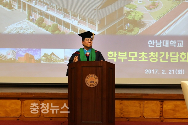 이덕훈 총장은 “정성과 헌신으로 키운 자녀들을 한남대에 보내 준 학부모님들께 감사한다. 학생들에게 실패를 두려워하지 않는 도전정신을 키워주고 값진 성공의 열매를 맺게 하겠다.” 라고 말했다.