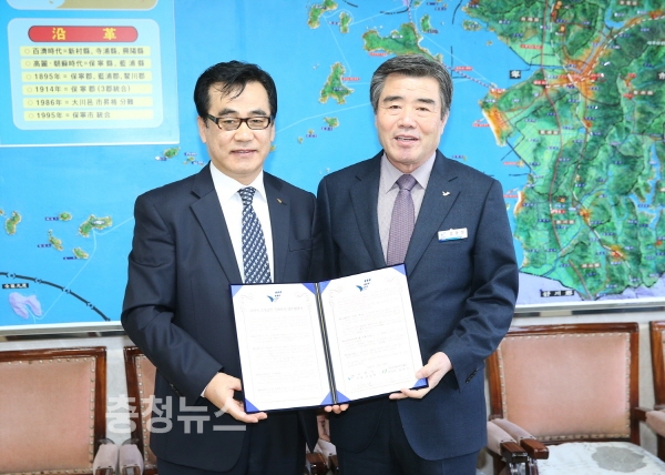 충남 보령시와 충남신용보증재단은 21일 시청 회의실에서 김동일 시장과 정철수 이사장 등 관계자가 참석한 가운데, 소상공인 특례보증 및 이차보전 지원업무 위탁 협약을 체결했다.