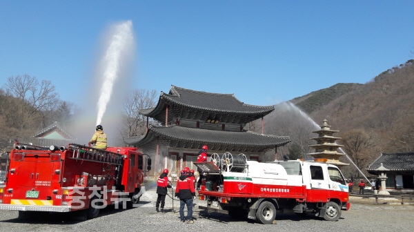보물 제356호인 ‘무량사 극락전’에서 부여군, 부여소방서, 외산면의용소방대, 사찰관계자, 문화재안전경비원 등 50여명이 참석한 가운데 소방훈련 및 교육이 진행됐다.