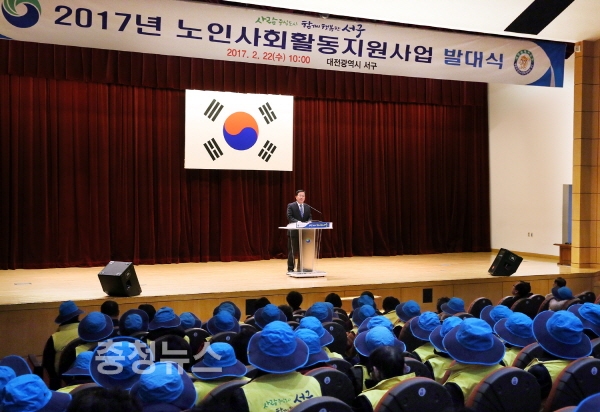 대전 서구 장종태 청장은 22일 구청 대강당에서 ‘2017년 노인일자리 및 사회활동지원 사업’ 발대식을 개최했다고 밝혔다.