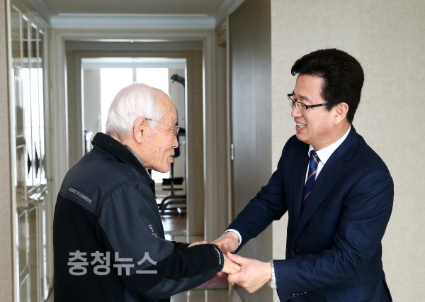 허태정 유성구청장은 22일 제98주년 3.1절을 앞두고 유성구 내 유일 생존애국지사인 정완진(90) 옹을 찾아 감사의 뜻과 위문품을 전달했다.