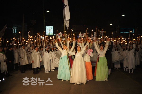 특히, 횃불행진은 오후 7시 25분 봉화탑에 횃불을 점화하고 참가자들은 손에 횃불을 받아 사적관리소부터 아우내 기념공원까지 총 1.4km 구간을 걸으며 만세삼창과 시위행진을 벌인다.