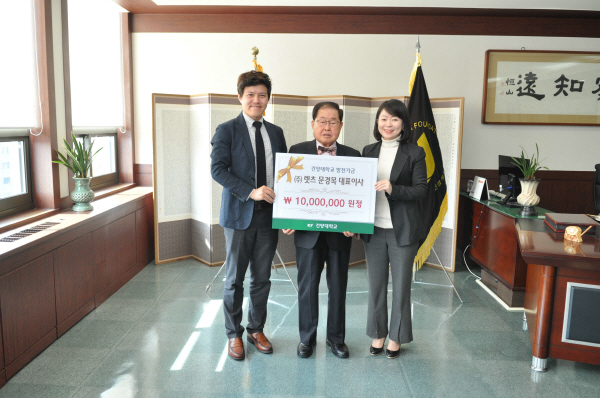 건양대학교(총장 김희수)는 23일 (주)렛츠(대표이사 김성은 문경목)가 학생들을 위해 써달라며 발전기금 1천만원을 기탁했다고 밝혔다.