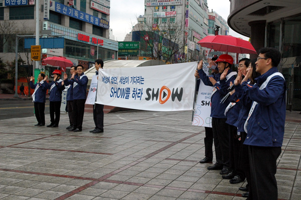 대전본부 직원들은 KTF의 3월 WCDMA 전국망 서비스 개시와 3.5세대 이동통신 서비스의 토탈 브랜드인 ‘SHOW’를 홍보했다.