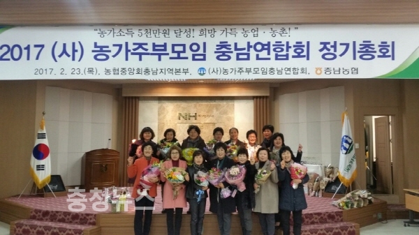 농협 충남지역본부(본부장 유찬형)는 23일 대전 중구 대사동 소재 지역본부 6층 대회의실에서 시·군, 읍·면회장으로 구성된 농가주부모임 대의원 160여명이 참석한 가운데 '2017 농가주부모임 충남연합회 정기총회'를 개최했다.
