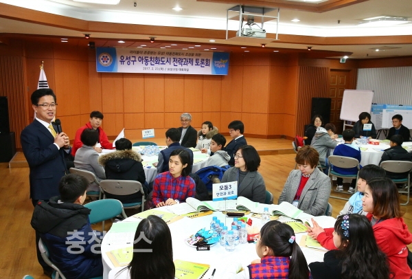 대전유성구 허태정 청장은 23일 구청 대회의실에서 아동이 존중받고 행복한 아동친화도시 조성을 위한 전략과제 토론회를 개최했다.