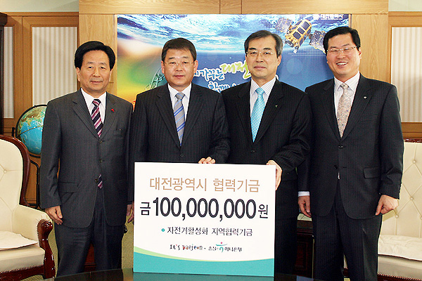 하나은행 충청사업본부 최임걸 대표는 6일 오전 10시 시청 응접실에서 박성효 시장을 예방하고 대전시의 ‘자전거 이용 활성화 사업’ 발전기금으로 1억원을 전달했다. ▲ 좌부터 박헌오교통국장.박성효시장.최임걸충청한나은행대표.박종덕상무 저작권자 © 충청뉴스 무단전재 및 재배포 금지 한중섭 기자 다른기사 보기 기사가 마음에 드셨나요? 충청뉴스 좋은 기사 후원하기 1,000원 3,000원 5,000원 10,000원 30,000원 50,000원 직접입력 비회원 약관동의하기 ※ 소중한 후원금은 더 좋은 기사를 만드는데 쓰겠습니다.
