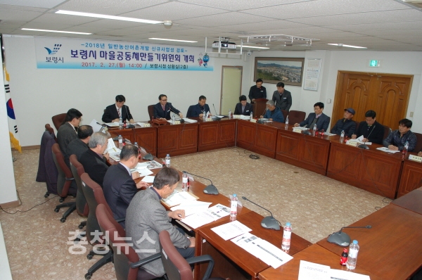 충남 보령시는 27일 오후 시청 상황실에서 정원춘 부시장과 배성의 충남농촌활성화센터장 등 마을만들기 위원과 사업 신청 각 마을 관계자가 참석한 가운데 2018년 일반 농촌분야 포괄보조사업 공모 신청을 위한 마을공동체 만들기 위원회를 개최했다.