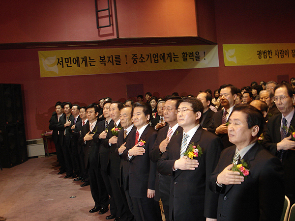 앞서 정 전 의장은 대전시 동구지체장애인협회 회원 100여명과 간담회를 갖고 "열린 우리당과 한나라당은 국가발전을 걱정하는 마음은 같지만 방식에선 다르다"면서 "한나라당은 복지예산을 '비생산적인 예산'이라며 깎아내리는 입장인 반면 열린 우리당은 사회에서 힘이 약한 사람과 함께 하려는 철학을 가진 정치세력을 도와줘야 한다고" 말했다.