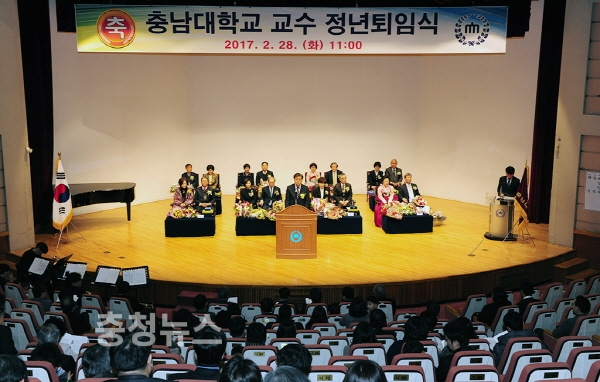 충남대는 28일 정심화국제문화회관 백마홀에서 김삼용, 김종철, 오예옥, 윤석경, 최성규, 박수철, 구현모, 박동철, 강이석, 이홍로, 강호, 유재철, 성찬용, 윤선애, 김달숙, 유관희, 노영재 교수에 대한 정년퇴임식을 가졌다.