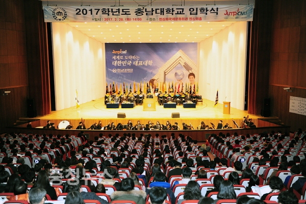 충남대는 28일 정심화국제문화회관 정심화홀에서 오덕성 총장과 이상민 국회의원, 설동호 대전시교육감, 강도묵 총동창회장, 학무위원 등이 참석한 가운데 2017학년도 입학식을 개최했다.