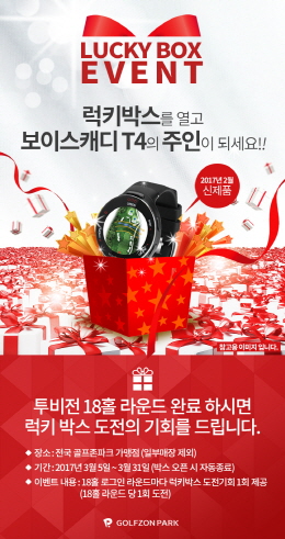 이벤트 경품인 보이스캐디 T4는 이벤트에 참여한 매장당 1개씩 제공되며, 이벤트 참여 매장에서 경품 수령자가 나올 시 해당 매장의 ‘럭키 박스를 열어라!’ 이벤트는 자동 종료된다.