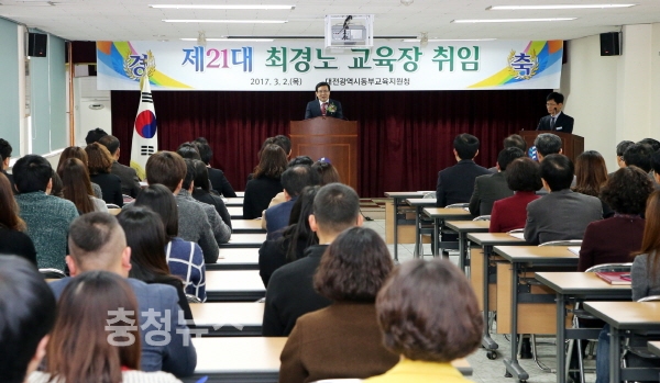 최경노 교육장은 취임사를 통해 ‘바른 인성과 창의성을 갖춘 품격 있는 세계시민 육성의 대전교육 실현을 위해 기본에 충실한 학교, 변화를 이끄는 교육지원청, 행복으로 하나 되는 대전동부교육’을 추진해 나가겠다고 밝혔으며,