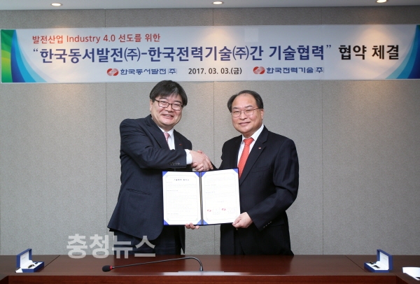 한국동서발전(주)(사장 김용진)와 한국전력기술(주)(사장 박구원)가 3일 경북 김천 한국전력기술에서 발전산업 엔지니어링 분야 4차 산업혁명에 대응하기 위한 기술협력 협약을 체결하였다고 밝혔다.