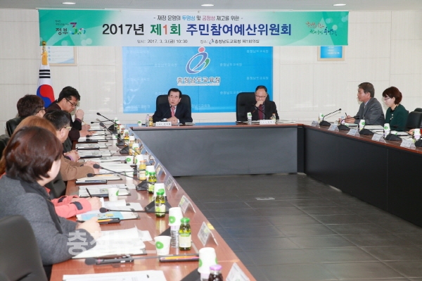 충남도교육청(교육감 김지철)은 3일 주민참여예산위원 40명이 참석한 가운데 2017년 제1회 주민참여예산위원회를 개최했다.