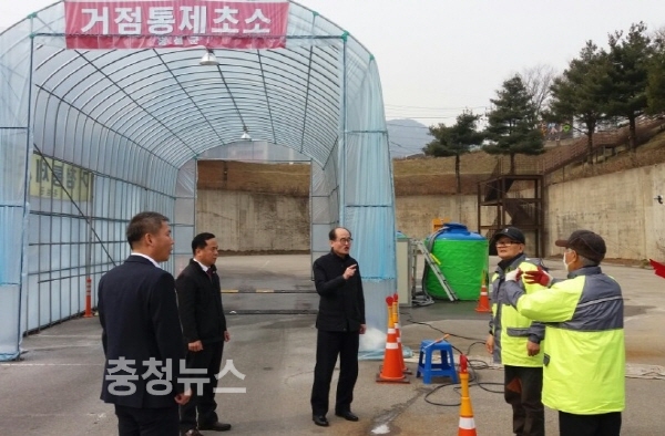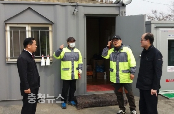 유찬형 농협 충남지역본부장은 5일 홍성지역에 발생한 AI로 인하여 축산농가 방역에 여념이 없는 홍성축협(조합장 이대영)과 가축질병 확산방지를 위하여 설치한 홍성읍 소향리 AI거점소독시설을 방문하여 근무중인 직원들을 격려하였다.