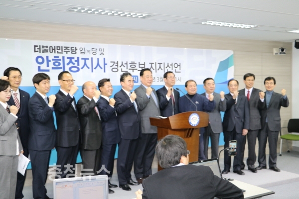 6일 오전에는 충남지역 전·현직 지방의원 및 전직 공무원 14명이 도청 브리핑룸에서 기자회견을 열고, "안희정과 함께 더좋은 정권교체와 시대교체를 실현하기 위해 민주당에 입·복당하며 안 지사를 지지한다"고 밝혔다.