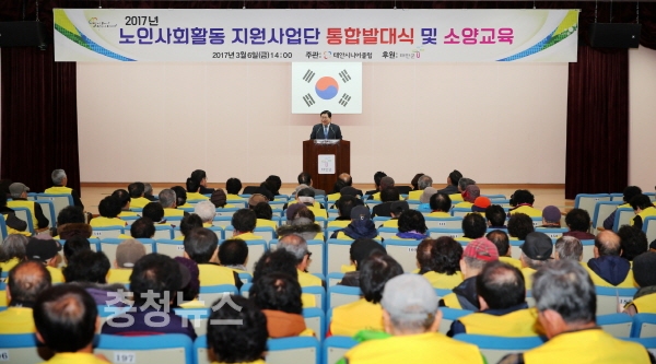 충남 태안군은 지난 6일 군청 대강당에서 한상기 군수를 비롯, 장정근 태안시니어클럽 관장과 김동민 (사)대한노인회 태안군지회장, 이용희 의장 및 군의원, 노인일자리 참여자 등 250여 명이 참석한 가운데 ‘2017 태안시니어클럽 노인사회활동 지원 사업 발대식’이 열렸다고 밝혔다.