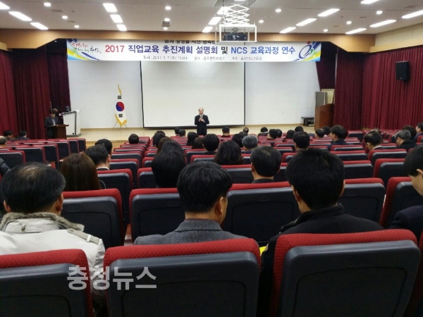 도교육청은 충남 도내 특성화고·마이스터고 교장, 직업부장, 취업부장교사와 교육청 담당자 등 120여명이 참석한 가운데 7일 공주생명과학고에서 ‘행복한 학교 학생 중심 충남교육’과 ‘꿈과 열정을 지닌 행복한 직업인 육성’을 위해 이 같은 내용을 담은 2017년 직업교육 추진계획 설명회를 개최했다.