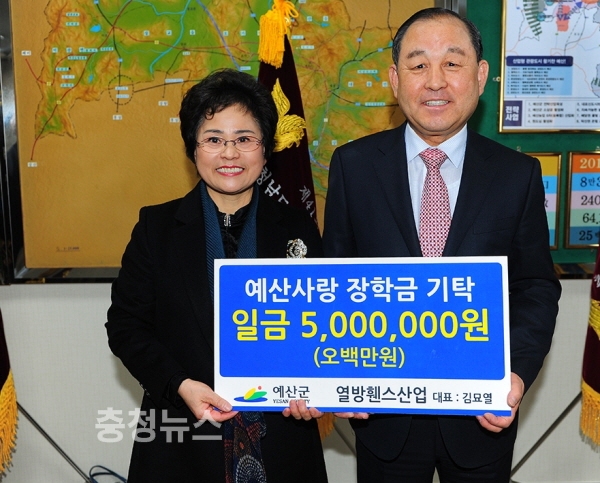 지난 7일 ㈜열방휀스(대표 김묘열)가 군청을 방문해 장학기금 500만원을 기탁