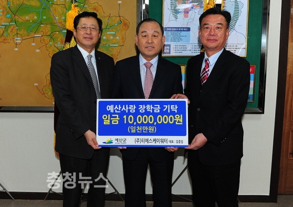지난 7일 ㈜TSK-water(대표 김종일)가 군청을 방문해 장학기금 1000만원을 기탁