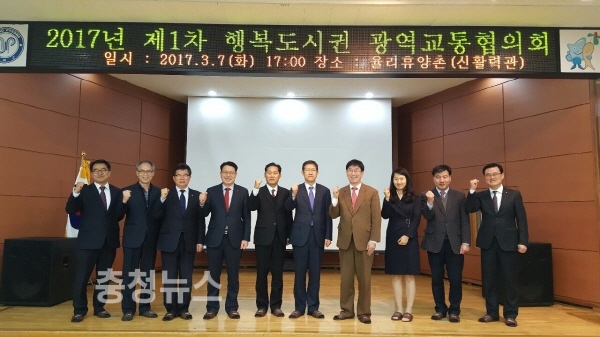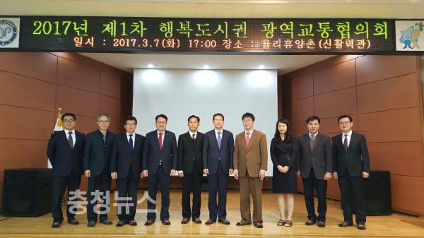 행정중심복합도시건설청(청장 이충재)은 지난 7일 충북 증평에서 대전광역시(시장 권선택), 세종특별자치시(시장 이춘희), 충청북도(도지사 이시종), 충청남도(도지사 안희정), 청주시(시장 이승훈), 공주시(시장 오시덕) 등 국가기관 및 6개 지방자치단체가 모여 「행복도시권 광역교통협의회(이하 광역교통협의회)」를 개최했다고 밝혔다.