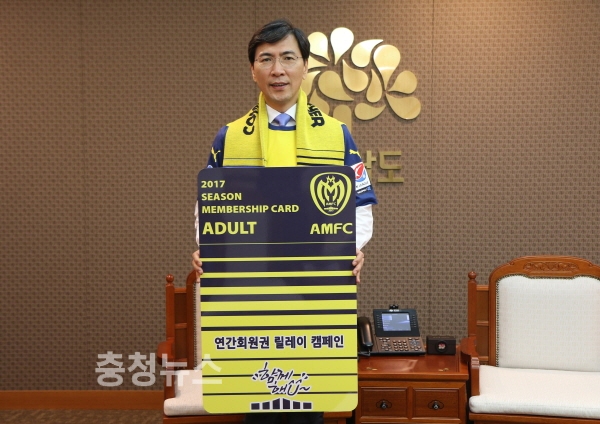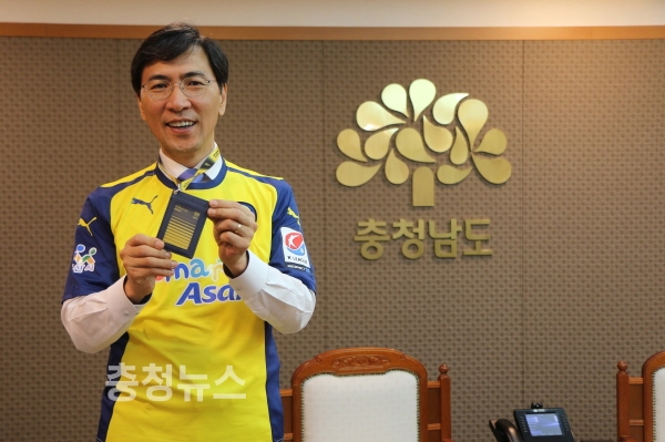 안희정 충남도지사가 충남 유일의 프로축구구단 ‘아산무궁화’의 시즌권자가 되었다.