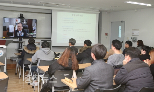 지난 7일에는 첫 원격 화상강의시스템을 통한 첫 강의가 이루어졌다. 경영회계학과 박준병 교수의 ‘혁신과 창의성’ 강의에 송하영 총장과 시스템 개발업체인 욱성미디어 안대영 연구소장이 원격으로 참여해 실시간 강의와 격려, 질의응답을 가졌다.