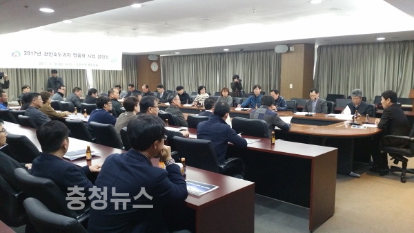 이날 설명회에는 우리밀영농조합법인, 황금들녘팥영농조합법인 농가와 호두과자 업체, 지역농협, 관련 부서 관계자 등 60여명이 참석해 천안호두과자 명품화 추진을 위한 사업계획과 구체적인 방안을 논의했다.
